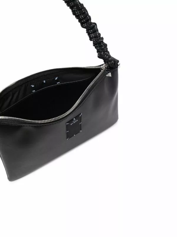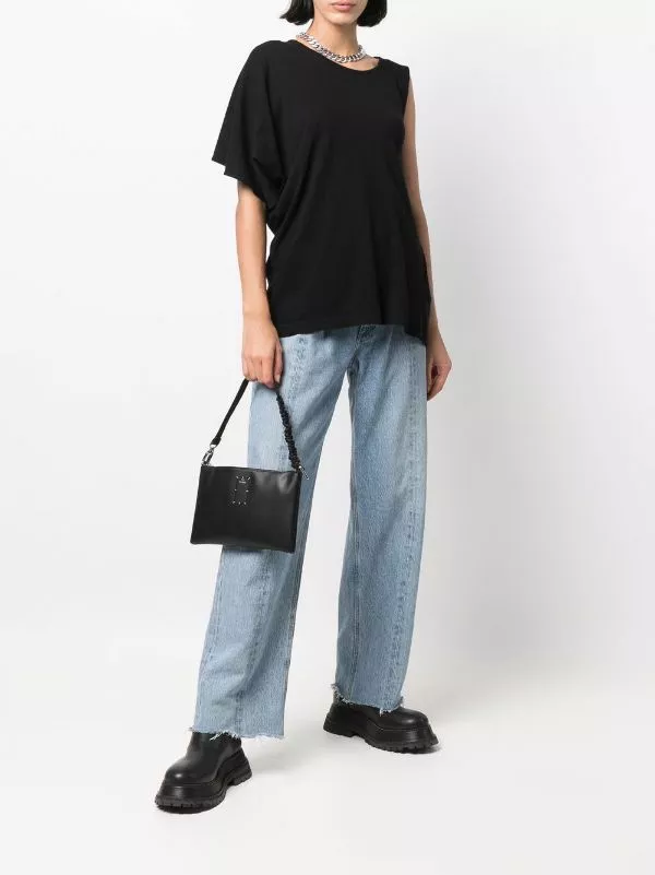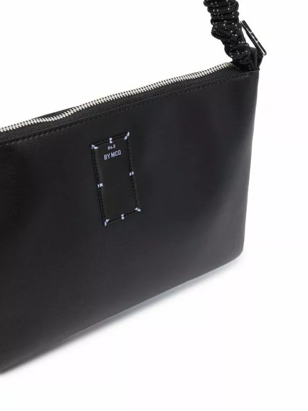 As part of the house of Alexander McQueen, MCQ is designed by an ever-shifting creative collective. The label’s artistic spirit is showcased in the ruched shoulder strap that adorns this black tote bag.